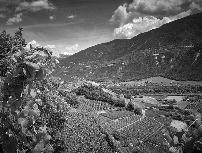 Die Rebterrassen von Saint-Léonard, auf denen ein Teil unserer Reben gedeiht, sind geprägt von aussergewöhnlich vielen Sonnenstunden und einzigartigen Böden. Gips, Schiefer, Quarz und Kalk verleihen den Parzellen eine charaktervolle Note, die sich in den Weinen unverkennbar widerspiegelt. Besonders der Chasselas und der Pinot Noir finden hier ideale Bedingungen.